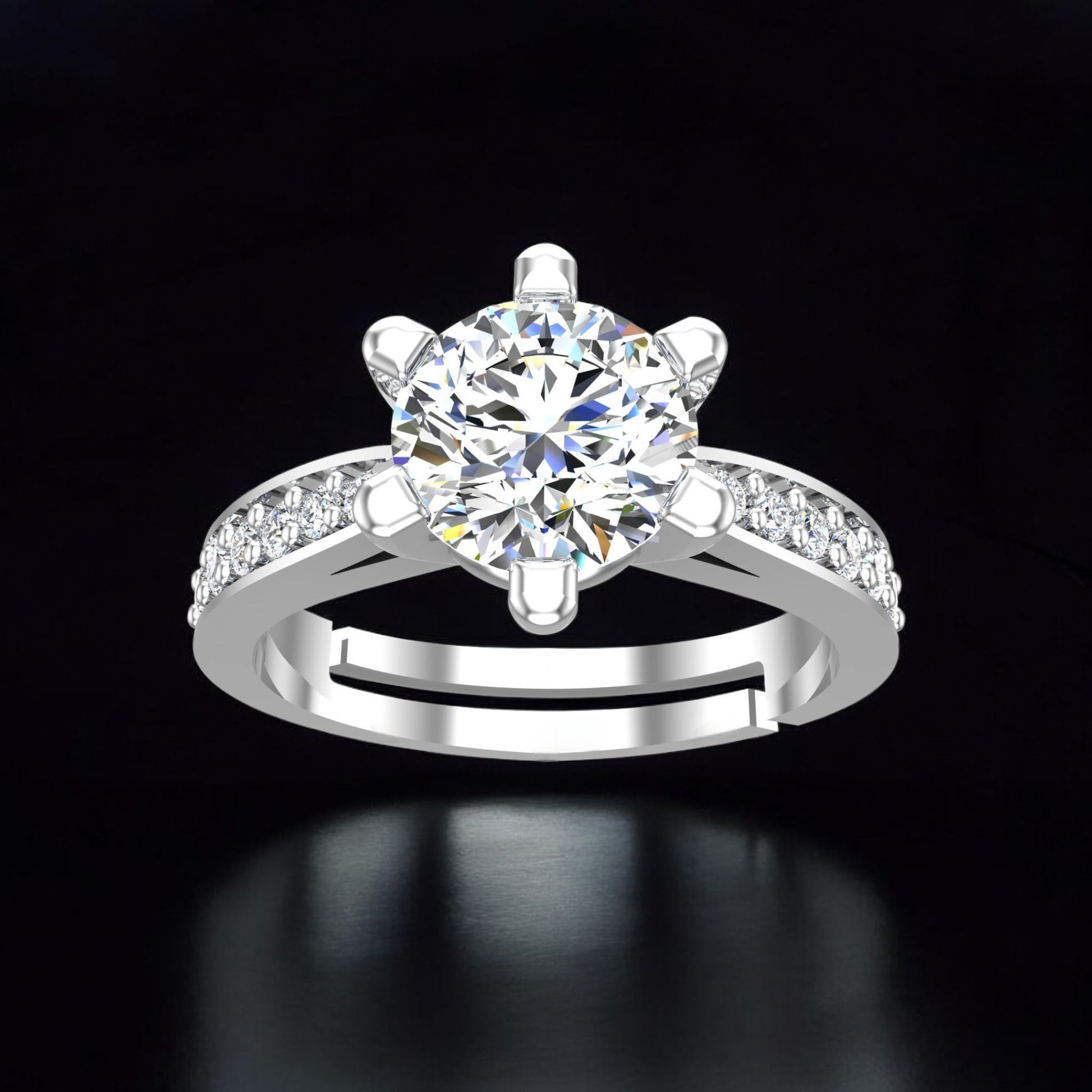 925 Pure Sterling Silver Adjustable Solitaire Ring for Woman
