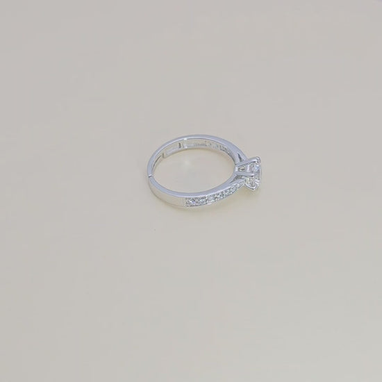 To protect the silver from tarnishing and to give it a bright, reflective white finish, the ring is plated with rhodium. Rhodium is a precious metal from the platinum family known for its exceptional resistance to corrosion and its hypoallergenic properties. This plating enhances the ring's durability and luster, making it a lasting piece of jewelry.