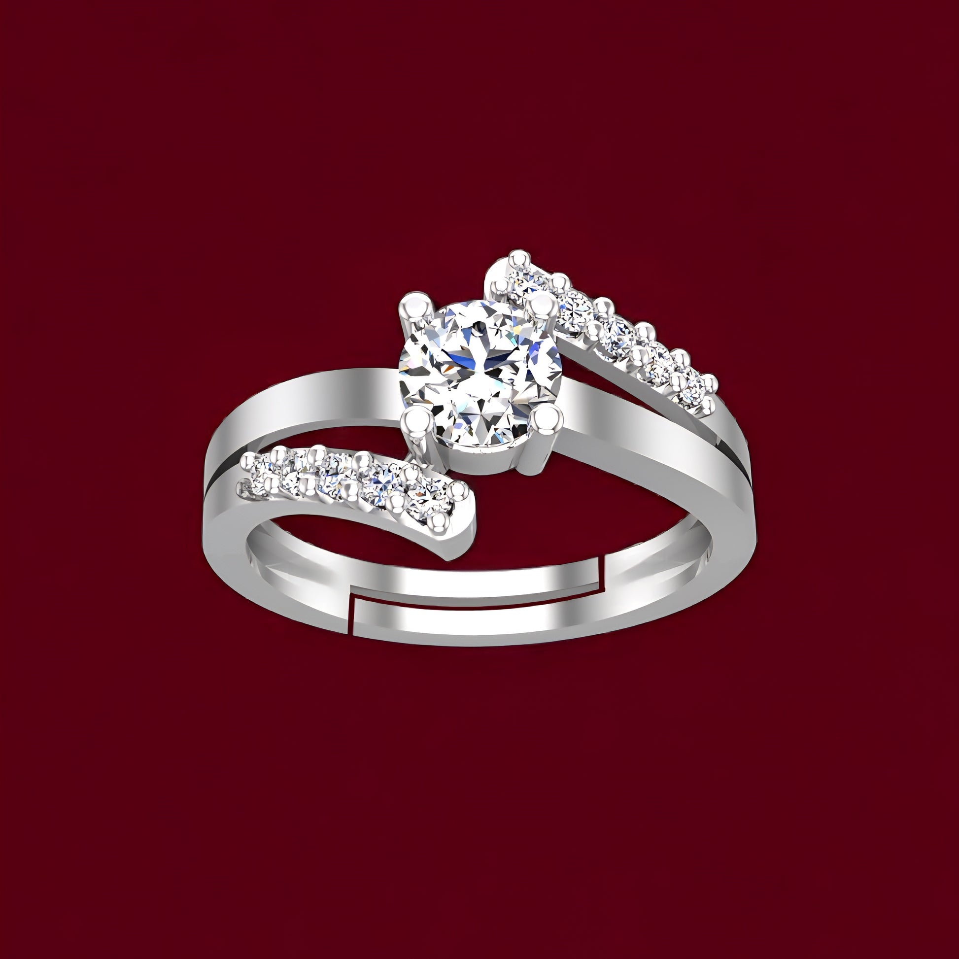 925 Sterling Silver Adjustable Ring for Girls & Women | AAA+ Cubic Zirconia Rhodium Plated Ring